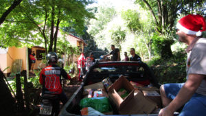 Em forma de agradecimento aos proprietários de terras onde temos nossas trilhas, fizemos entregas de presentes ontem, domingo.
